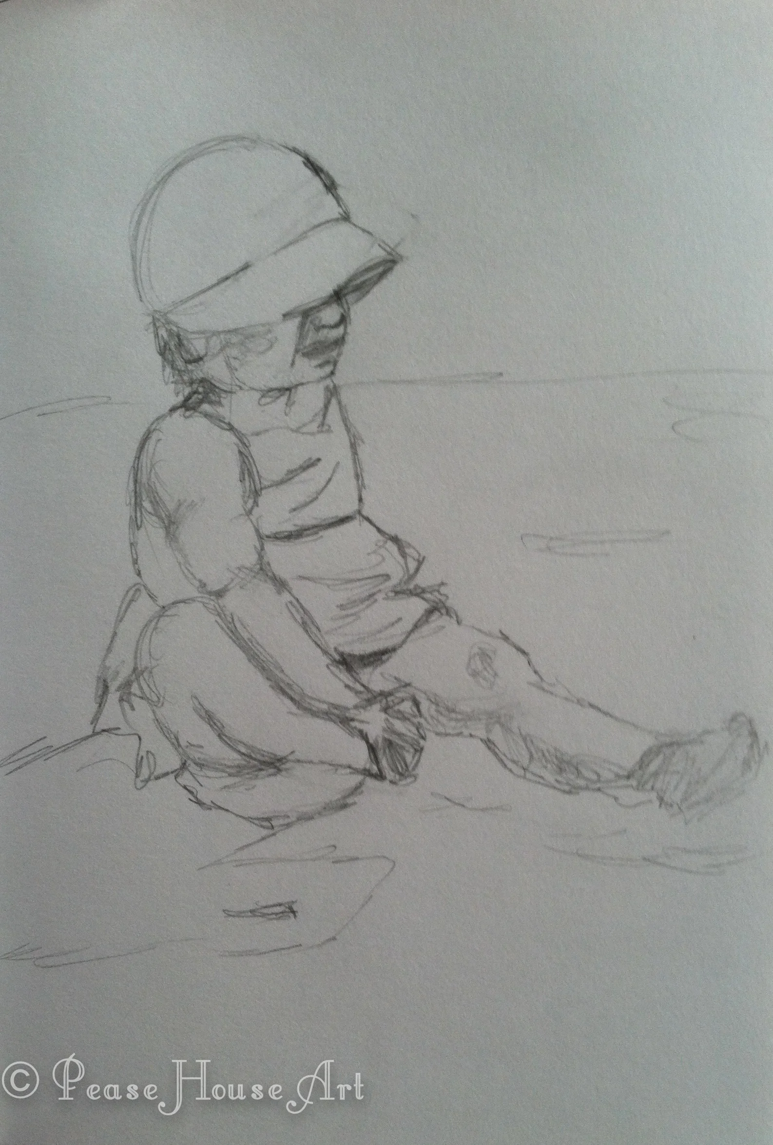 This is the gorgeous babe I saw on the beach. I'm always nervous about photographing and drawing children because I don't want parents to think I'm a Creepy McCreeper... These parents were great, though, and let me take a ton of photos. This is quick sketch I did. She was so cute as she toddled in the sand, fell over, picked herself back up, and then plopped down and just played in the sand.