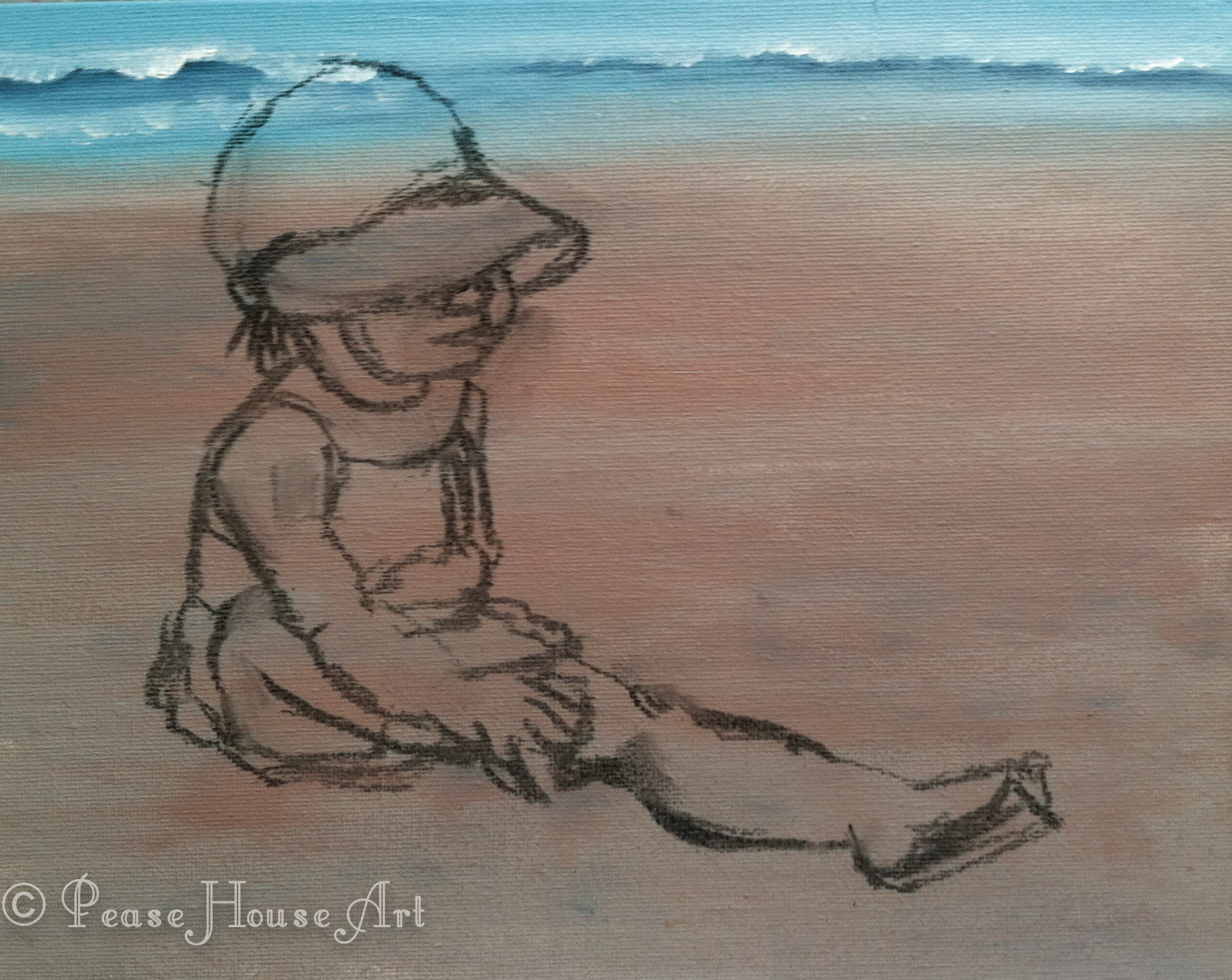 Well, here she is at last... my hot babe on the beach... my bathing beauty... my cute little beach cherub. I do love children. To me they represent innocence, hope, potential, purity, meekness, and joy. I love to hold a child's hand, play with a child's feet, and answer every single "why" they can come up with. Painting them, apparently, is no different. I have thoroughly enjoyed every child I've painted. I may have to stick to this genre...
