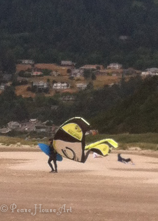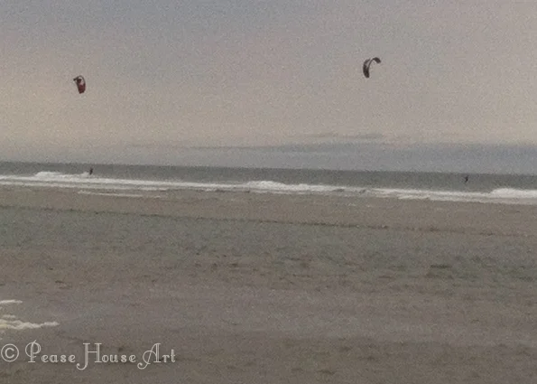 I had a crazy weekend that flowed over into Monday. When I headed to the beach I found myself there with no sketchbook and no camera. The pictures are pretty bad, but I'm still hoping to get a painting or two out of them. I love watching the wind surfers. I've got to find me a wet suit so I can get out there and do it myself!