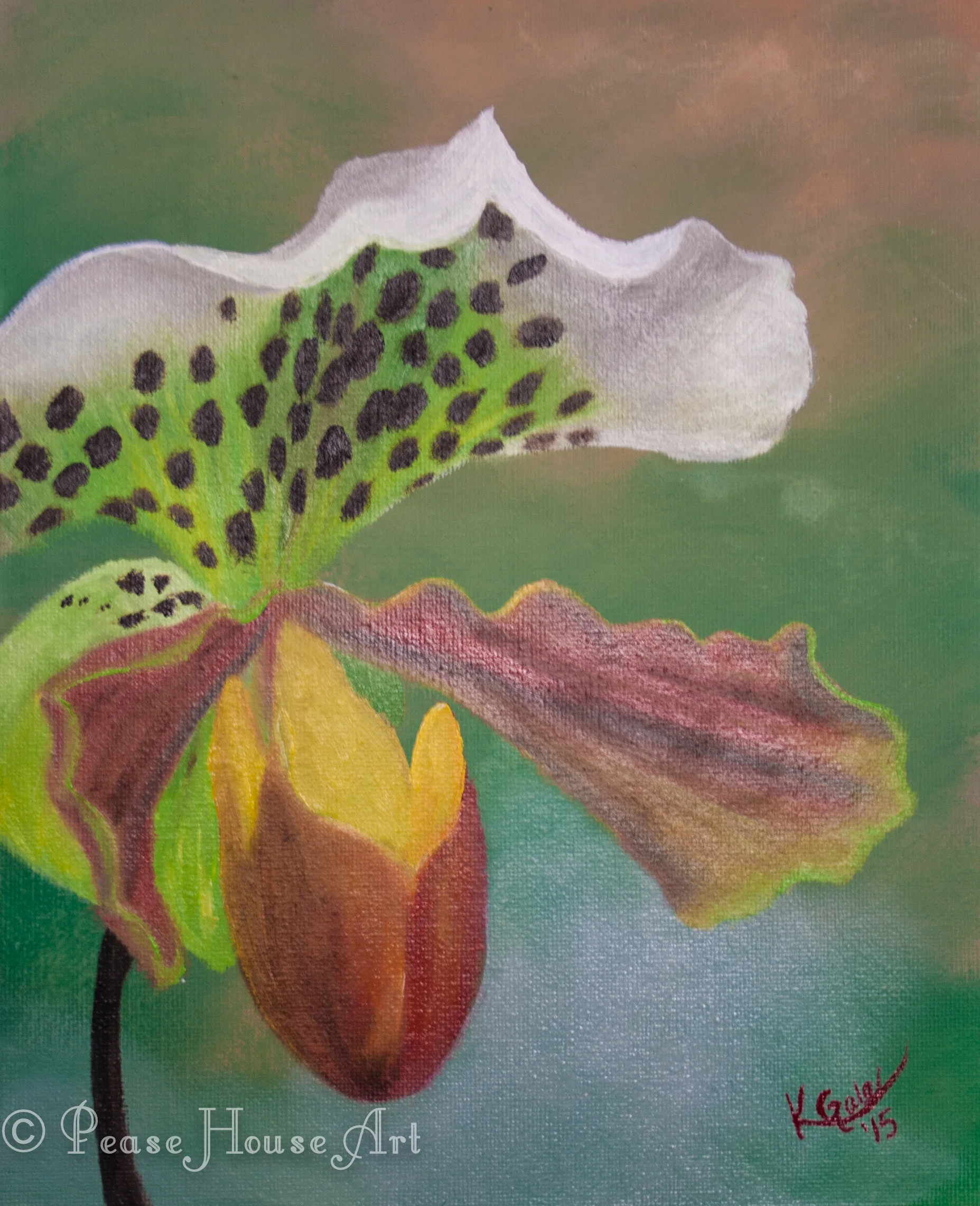 This Lady Slipper was a special request from a special person in my life. It was fun to paint, but it was also fun to think of her and the impact that she had on my life. I hope that she will find beauty in the painting and see her own beautiful heart in it as well. Lady Slipper is very fitting for her because has always been a wonderful example of a very gracious lady.
