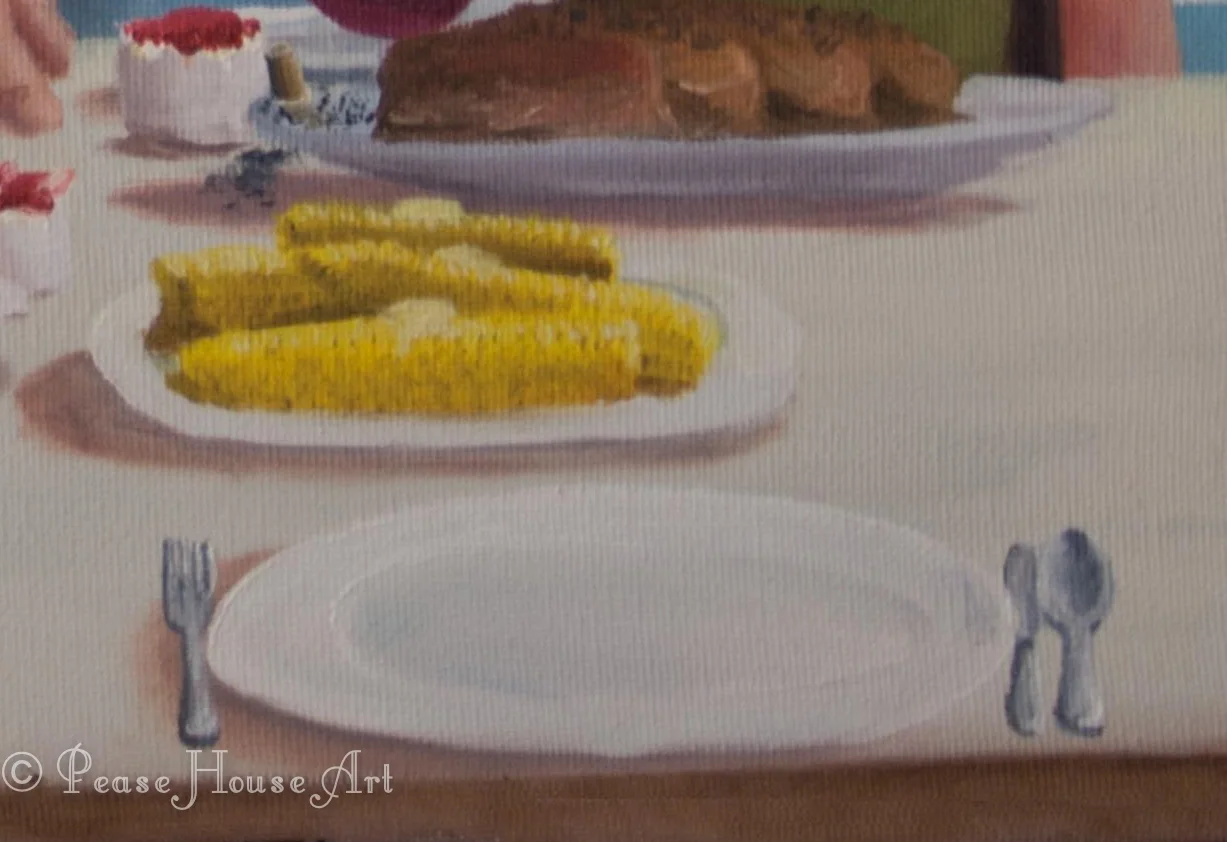 Well, this is it. I finished the painting today and submitted it for the Word and Image Project. It's been fun posting my progress. This was a short amount of time to do a painting this detailed. There are many aspects I would love to go back and continue to work. I had a fun conversation today though, that reminded me to keep it in perspective. I told my friend that as a recovering perfectionist it is hard for me to take on anything that I don't know I can do perfectly. Painting is "perfect" therapy for that because a painting is never perfect. There simply comes a time when I have to say "Good enough." So while I could nit-pick this to death... it's good enough. I will post the final painting, along with the poem that inspired it, after the opening reception at the Hoffman Center. Thanks for tagging along with me on this one.