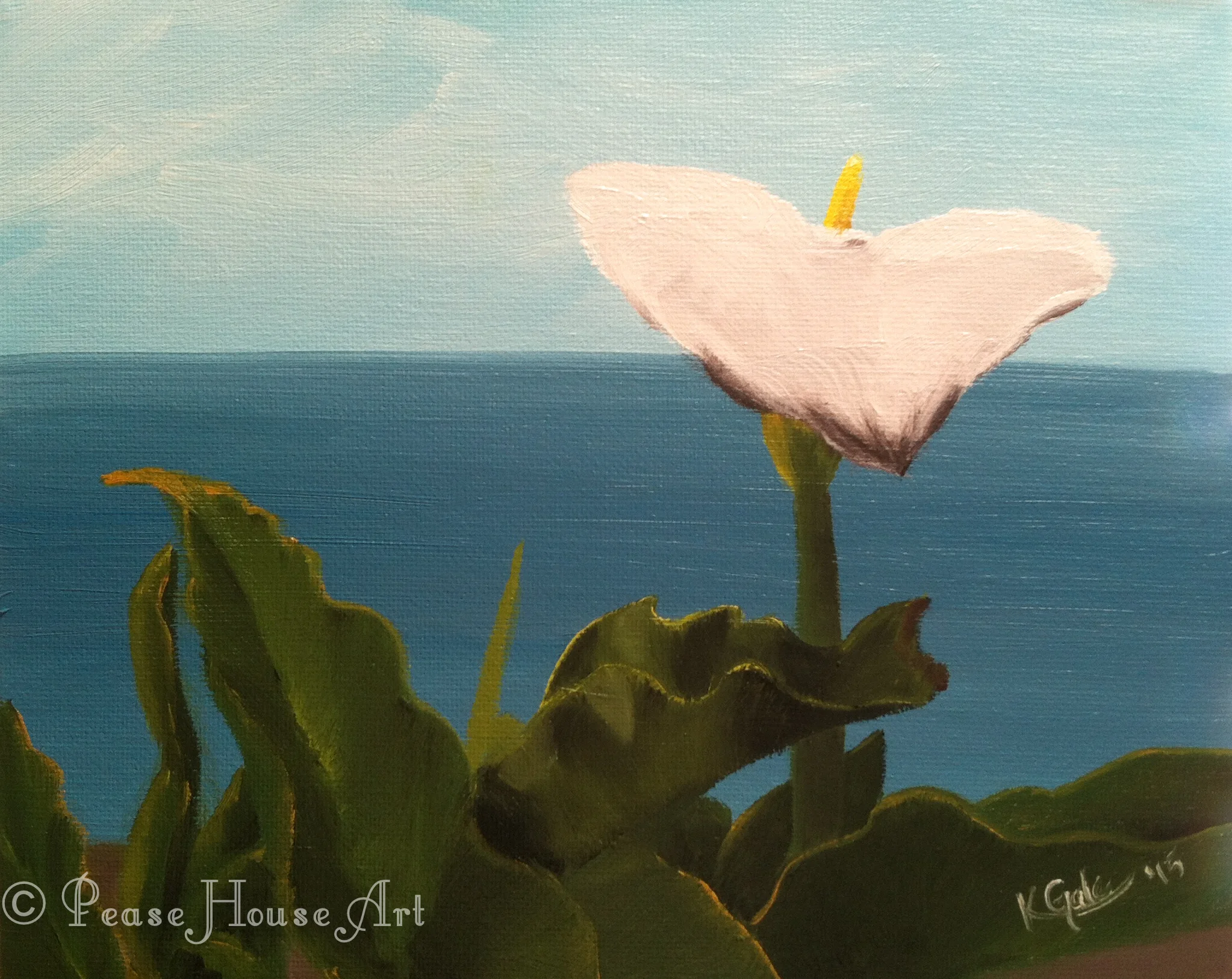 I was walking to the beach in Manzanita, OR when I came upon a row of lilies. They are blooming everywhere here on the coast this time of year. But the ocean just made the perfect background and I had to stop in my tracks and take some reference photos. Once the background dried, the lily actually came together in about an hour. Fun, fun fun!