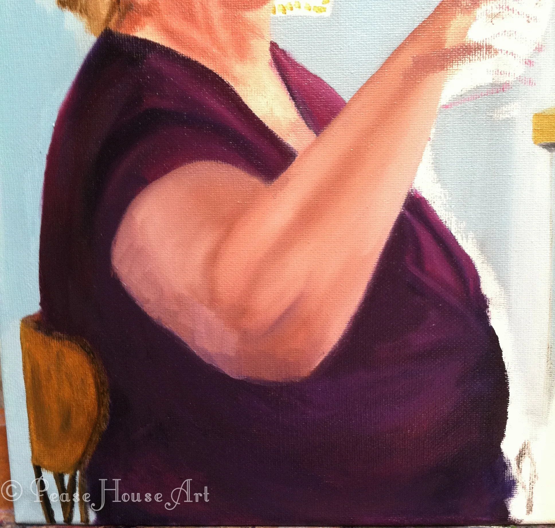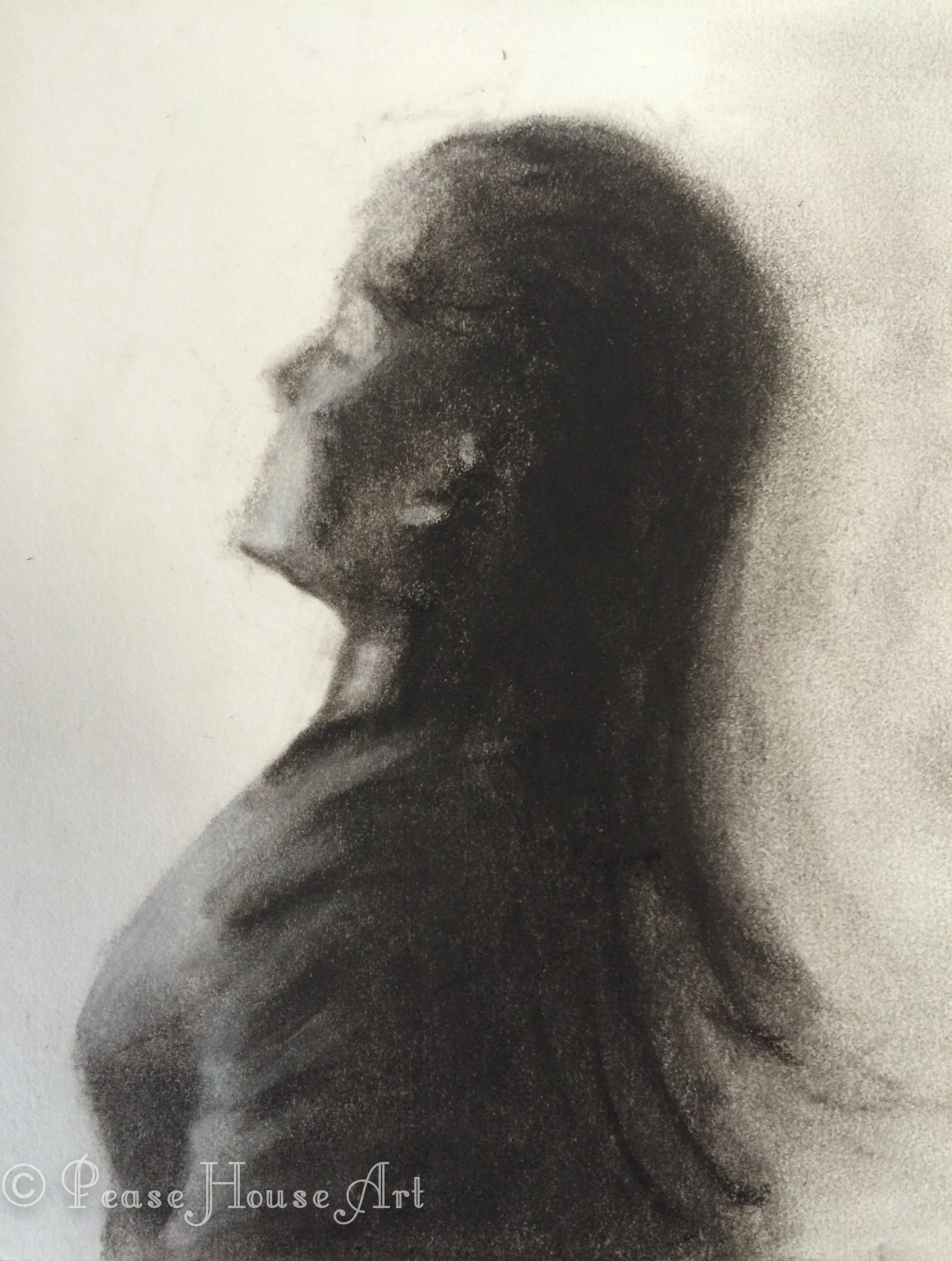 And then I do it again and again. I call this layering. Each time I repeat the process I see lights I didn't see before. I see darks that are darker. I see shapes that are not quite right. So I paint by number again and soften again until suddenly, there she is. So tune in again tomorrow and we'll see if we got there!