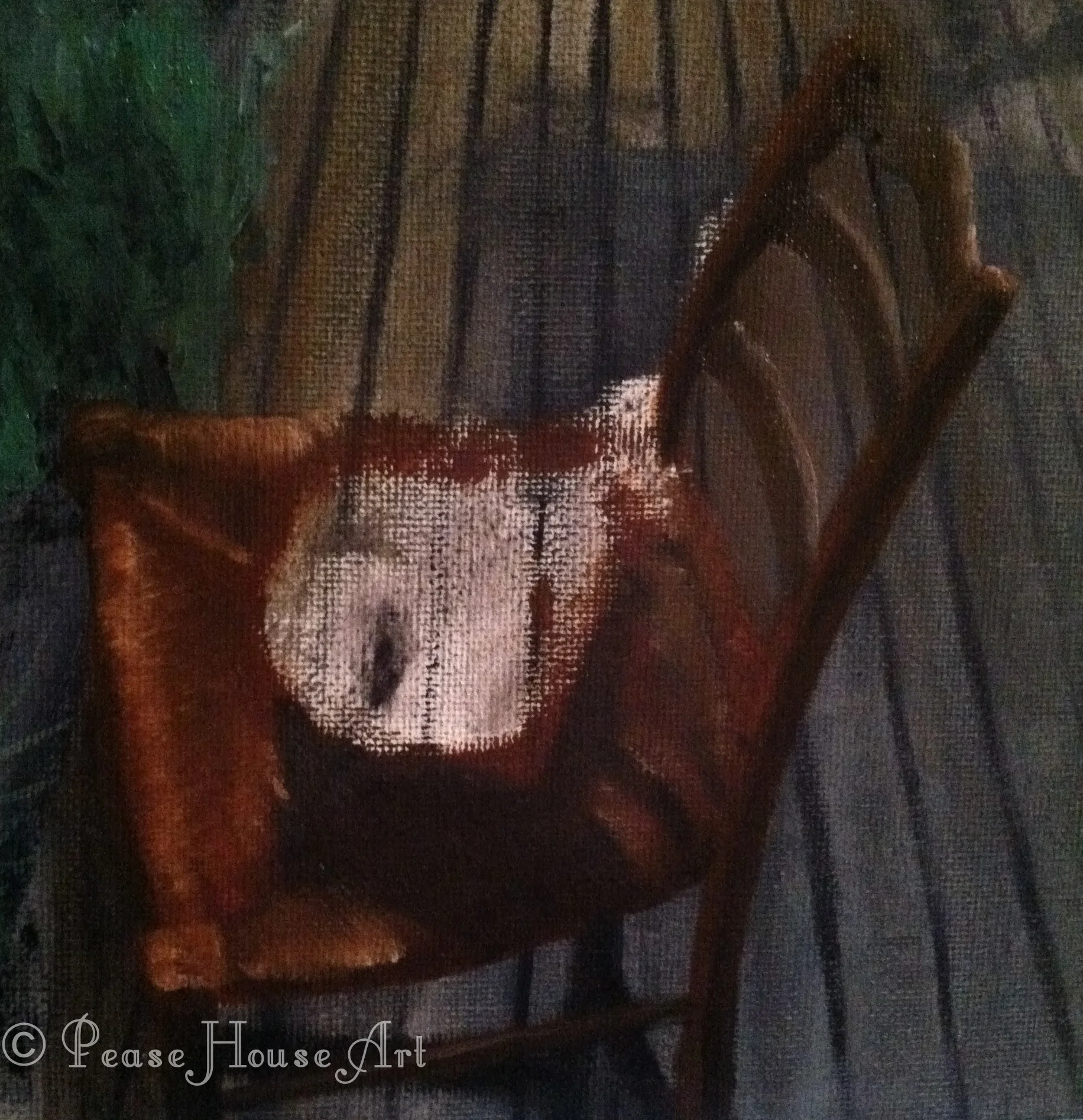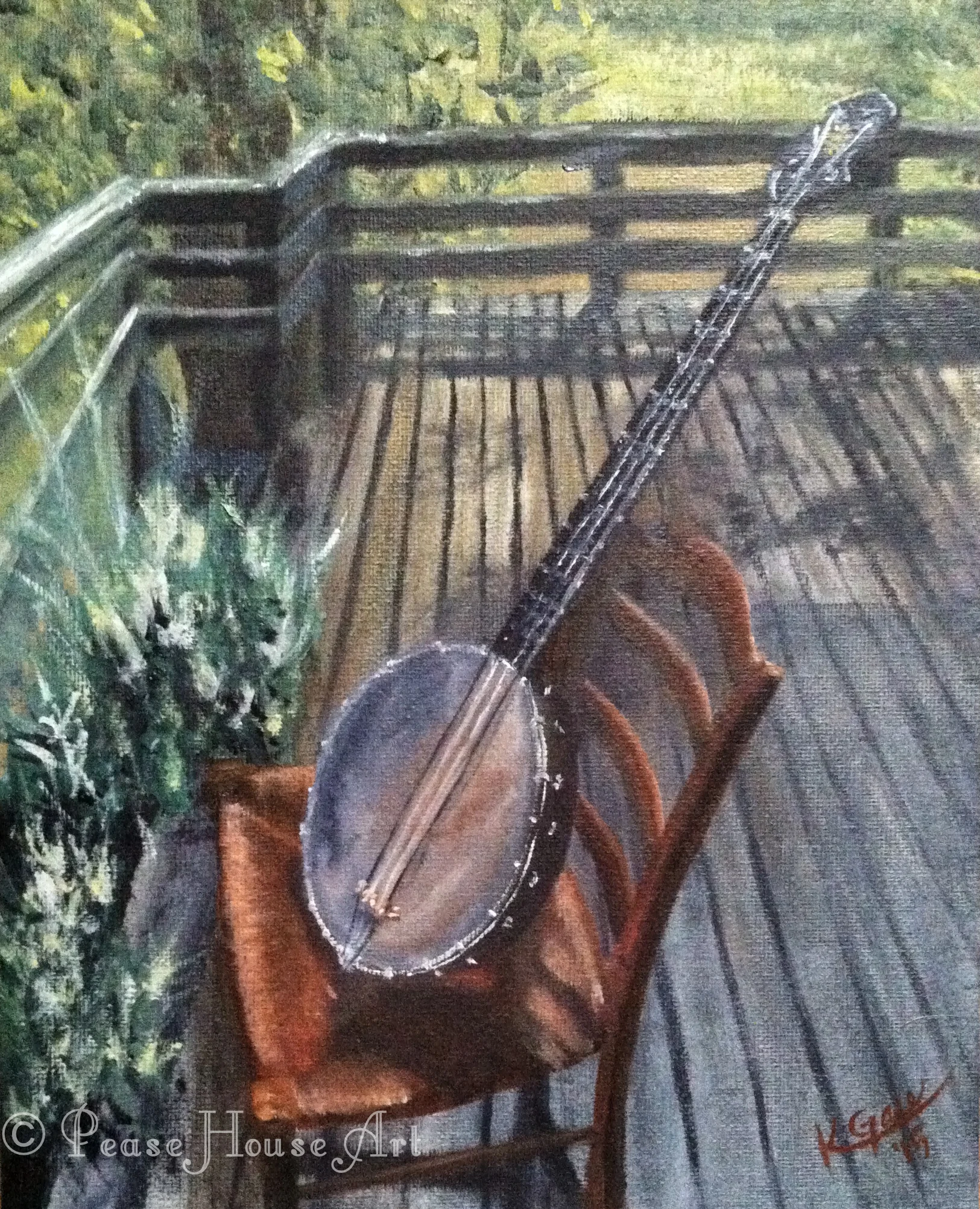Heavenly Chair was a request from my dear husband. It is his anniversary gift. He loves his banjo and on this particular trip to see his mother he took it and played for her, and for the deer who gather on her lawn. He set the banjo down and realized how lovely it looked it in the morning light. I love that he has an eye for beauty, composition, and design. Happy Anniversary Love!