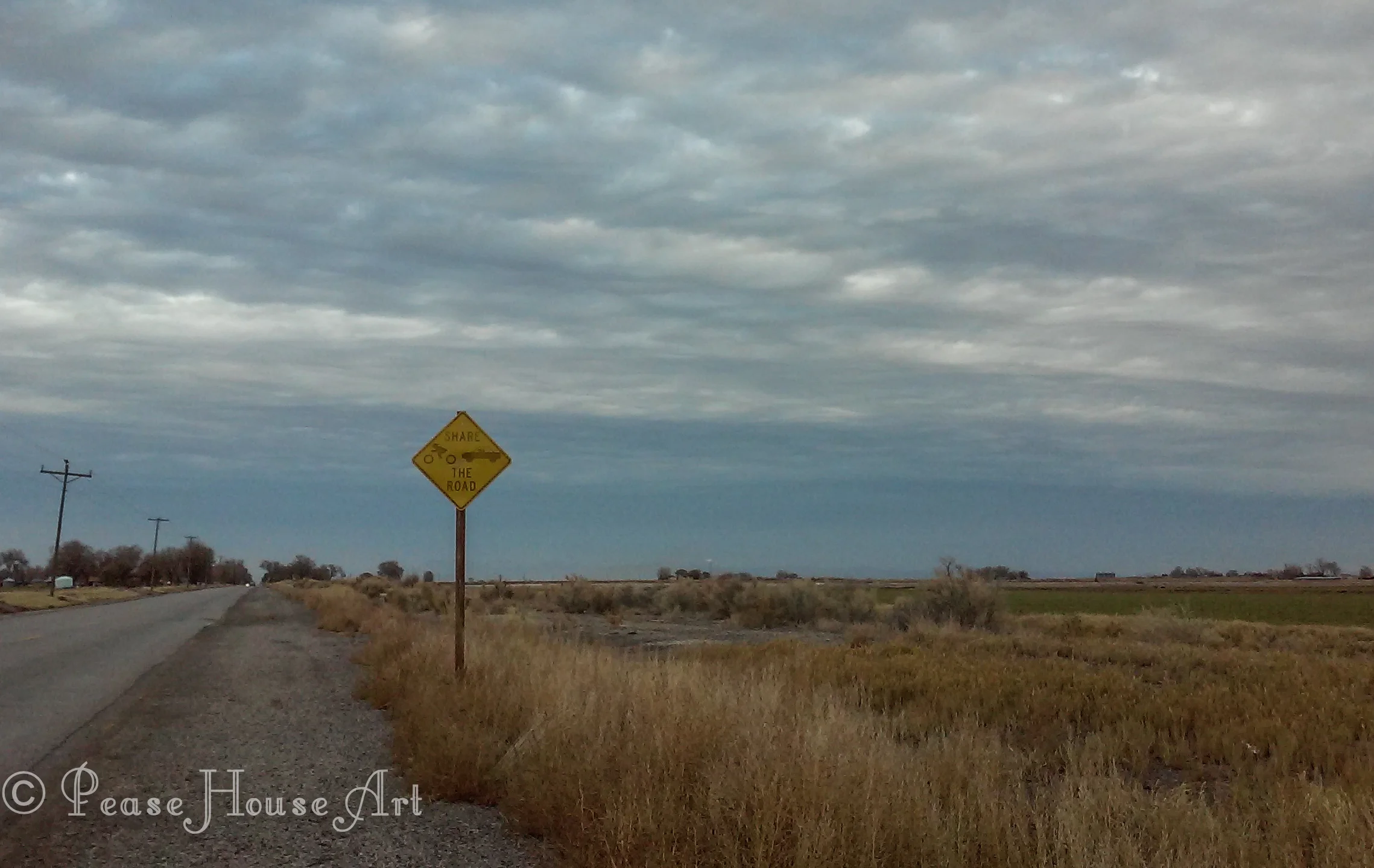 I grew up on a small farm in the middle of nowhere. As we drove around sharing memories we passed this sign. We had to turn around and go back for a photo. In the Portland area we see these signs all over the place. Of course we see cyclists all over the place too. There's hardly a need, way out here, to share the road with other vehicles, let alone bicycles. So the irony was just too fun not to capture. And yet, shouldn't we always be sharing whatever we have, with whomever else is out there? Share the road of life...