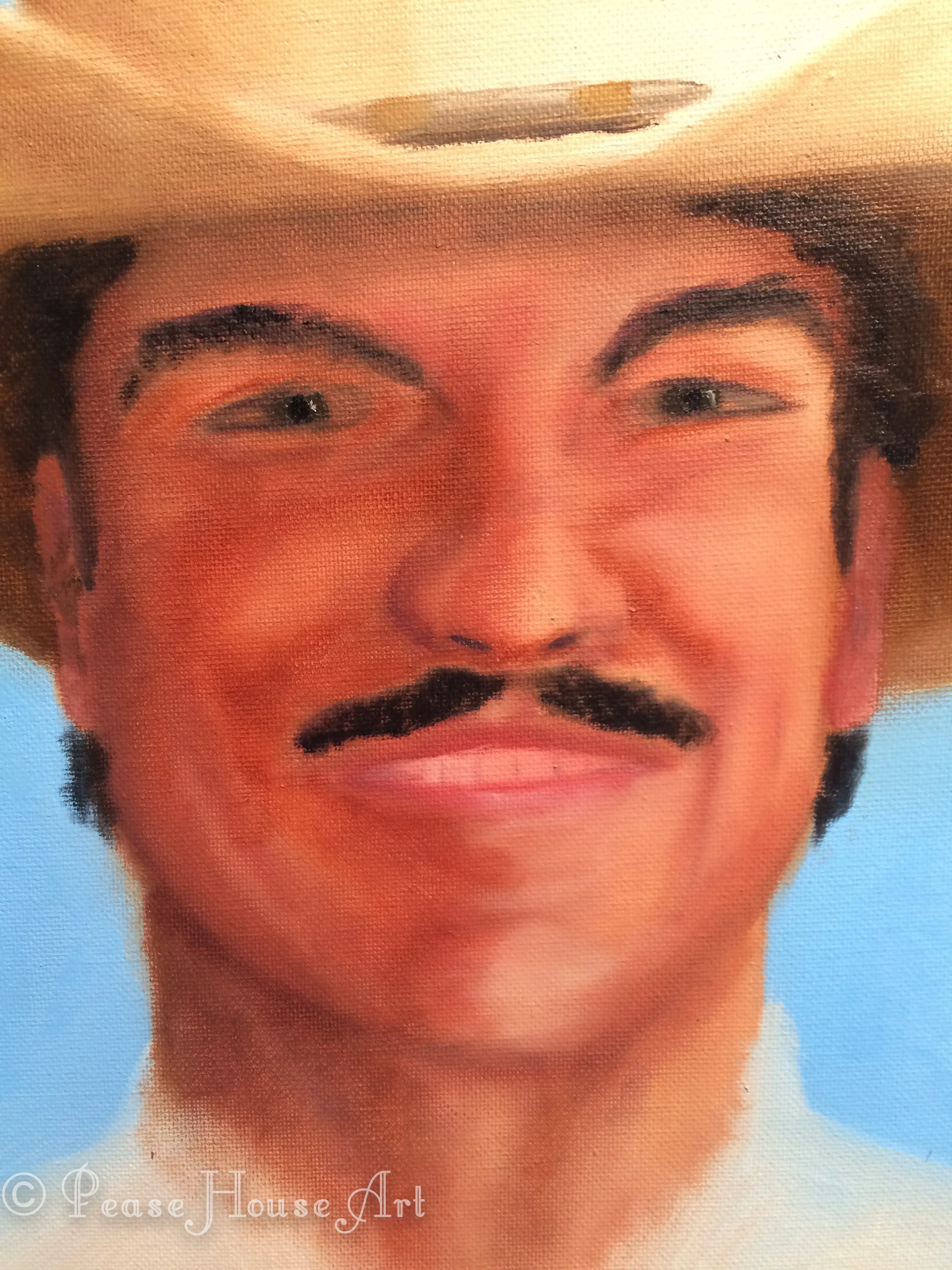 Sometimes I can't figure myself out. I was making great progress on the face and feeling really good about it. But it has taken all my will power to get myself back to the canvas. Perhaps I was afraid I would mess it up. I don't know. But man, I have been fighting myself today. I finally did it though, and I think he looks quite handsome. I'm checking in with "Dad" to get his opinion before I go any further on it. But for now, I think he's looking pretty handsome.