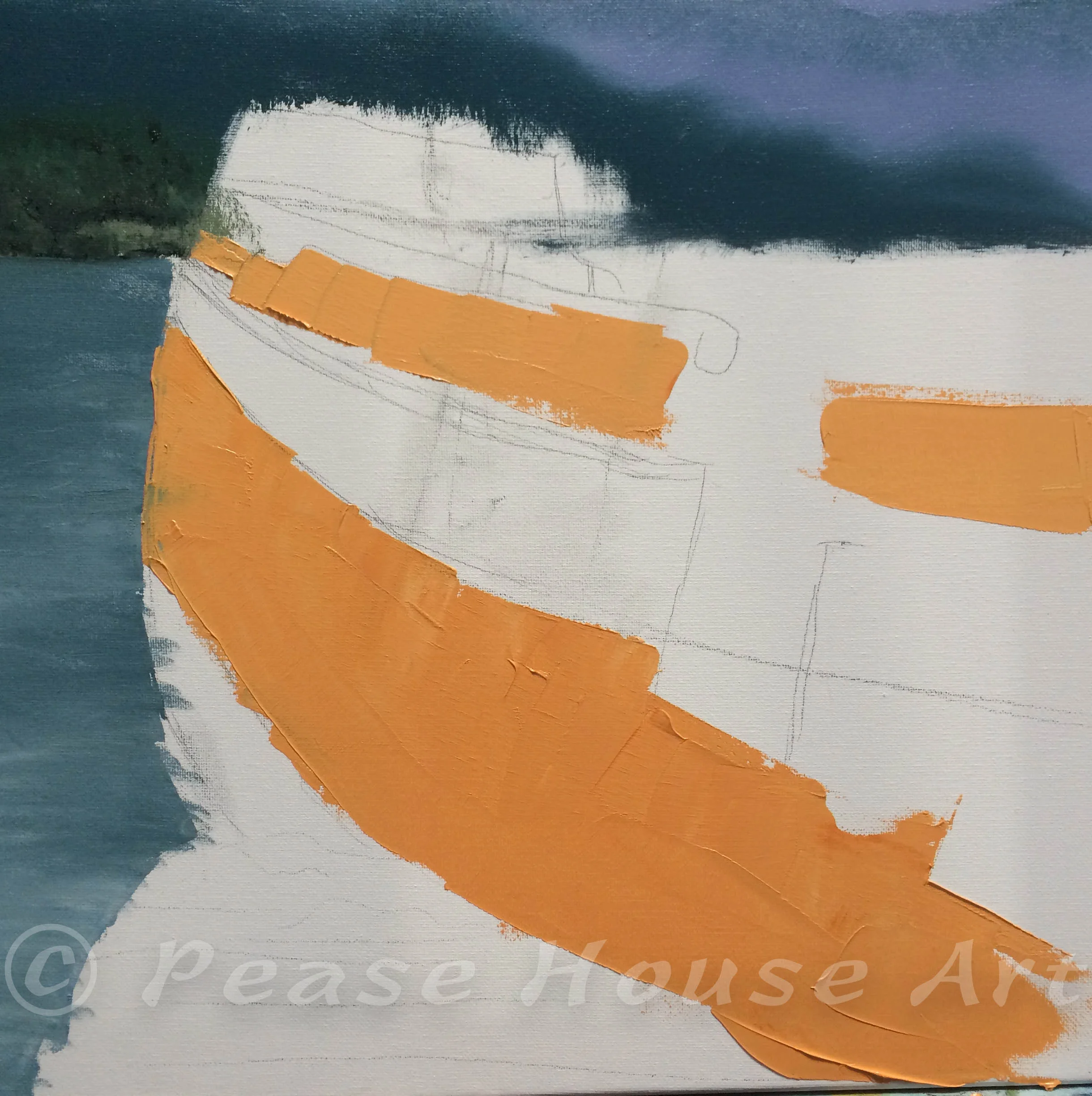 I chose this image to illustrate something simple but effective. When there is a lot of canvas to cover, getting the paint worked into the fibers of the canvas can be tedious and even difficult. I have discovered that using a palette knife to cover large areas of canvas works well. It covers the area quickly, pushes the paint into the fibers, and makes it easy to spread it to the remaining areas with much less effort.