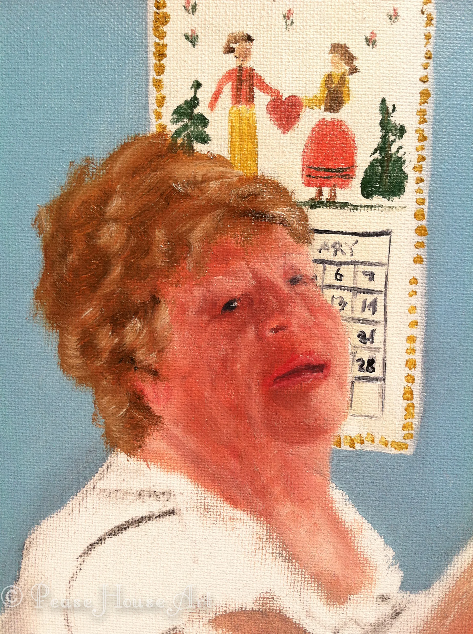 She now has eyes to see, and a mouth to speak, but still needs an ear or two to hear! Poor dear... Sometimes it gets frustrating, but for the most part it's fun and fascinating to watch the paint and colors move around here and there and everywhere until suddenly they are just right and the figure is looking back at me saying, "You found me!" Grandma Ruby isn't there yet, but she's wiggling her way out.