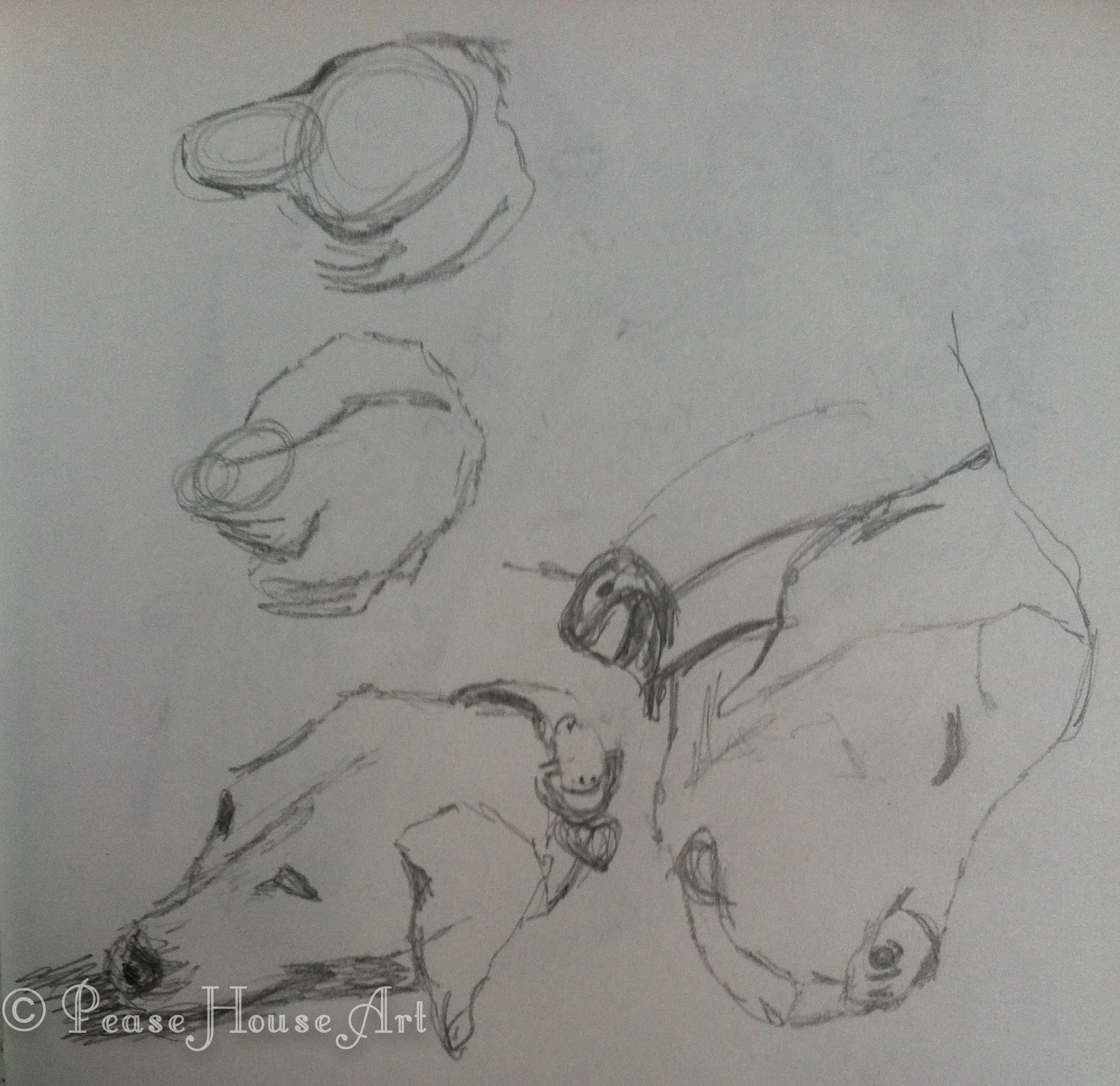 Another attempt to sketch Twilly while she sleeps. How does she know I'm looking at her? She doesn't move a muscle until I want to sketch her. Then she won't hold still. Silly dog...