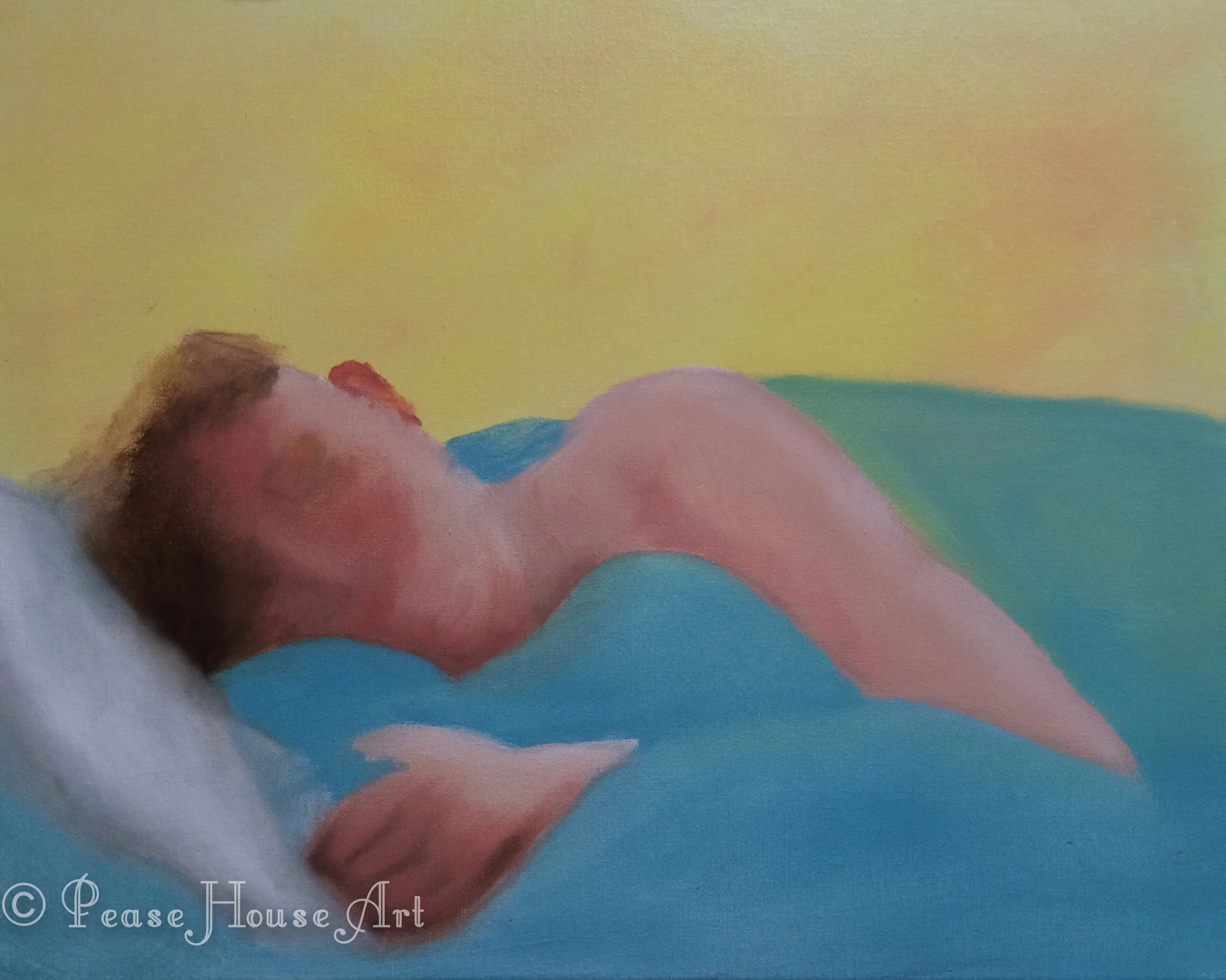 I didn't have nearly as much time to paint today as I'd hoped. But I did get some good flesh tones started and I feel like the placement is right. She may or may not wake up before the painting is through, but for now, she is sleeping softly and waiting for more definition tomorrow. I have to say this painting makes me so sleepy!