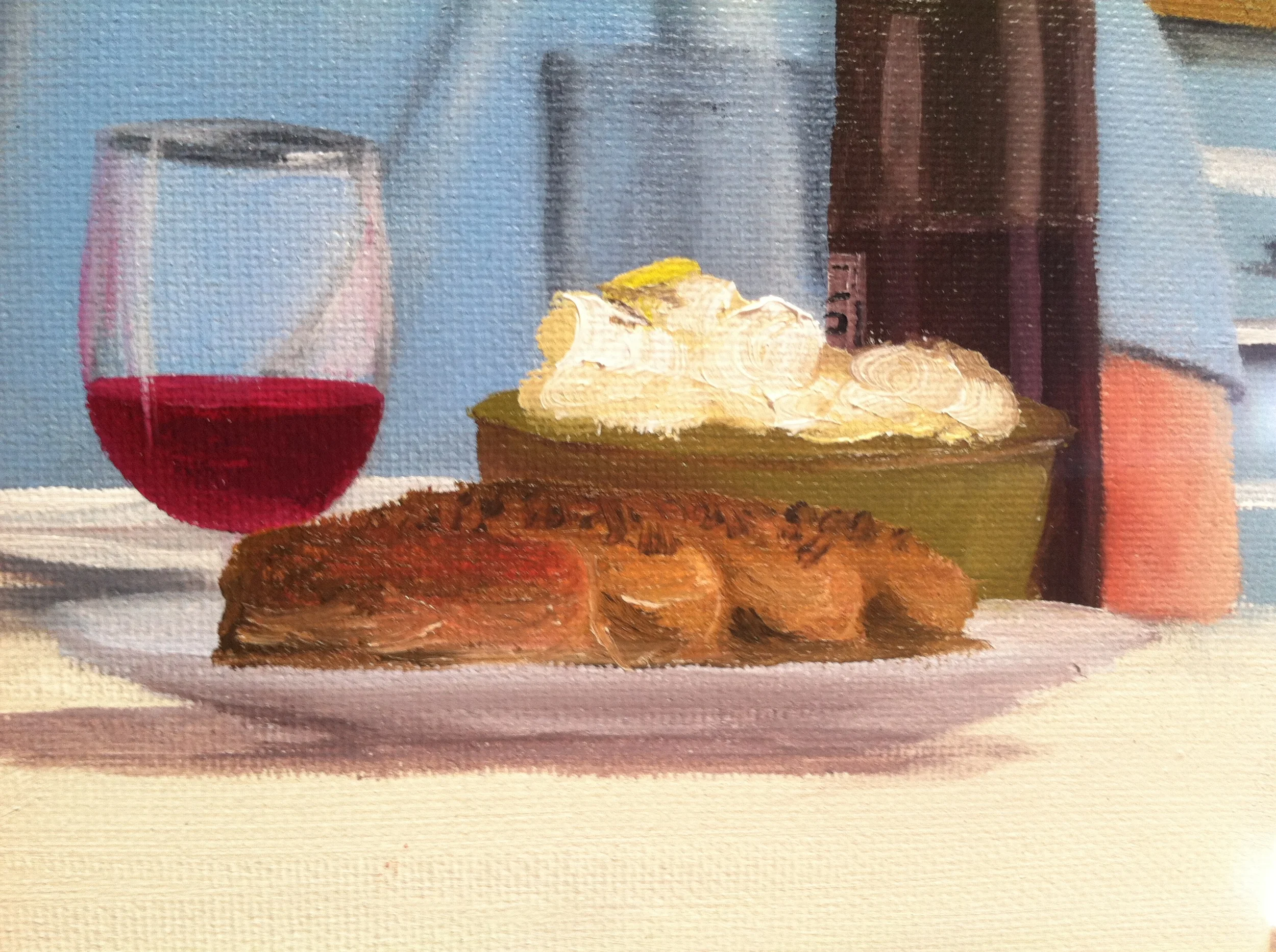 While I thoroughly enjoy painting and easily get lost in it, there are some days that are easier and some that are harder. Today was a grueling day, as far as painting days go. I'm not really complaining. It was simply a lot of hours in one day, and a lot of working and reworking and building layers. But in the end, Grandma Ruby is now able to say to one and all, "Cheers!"