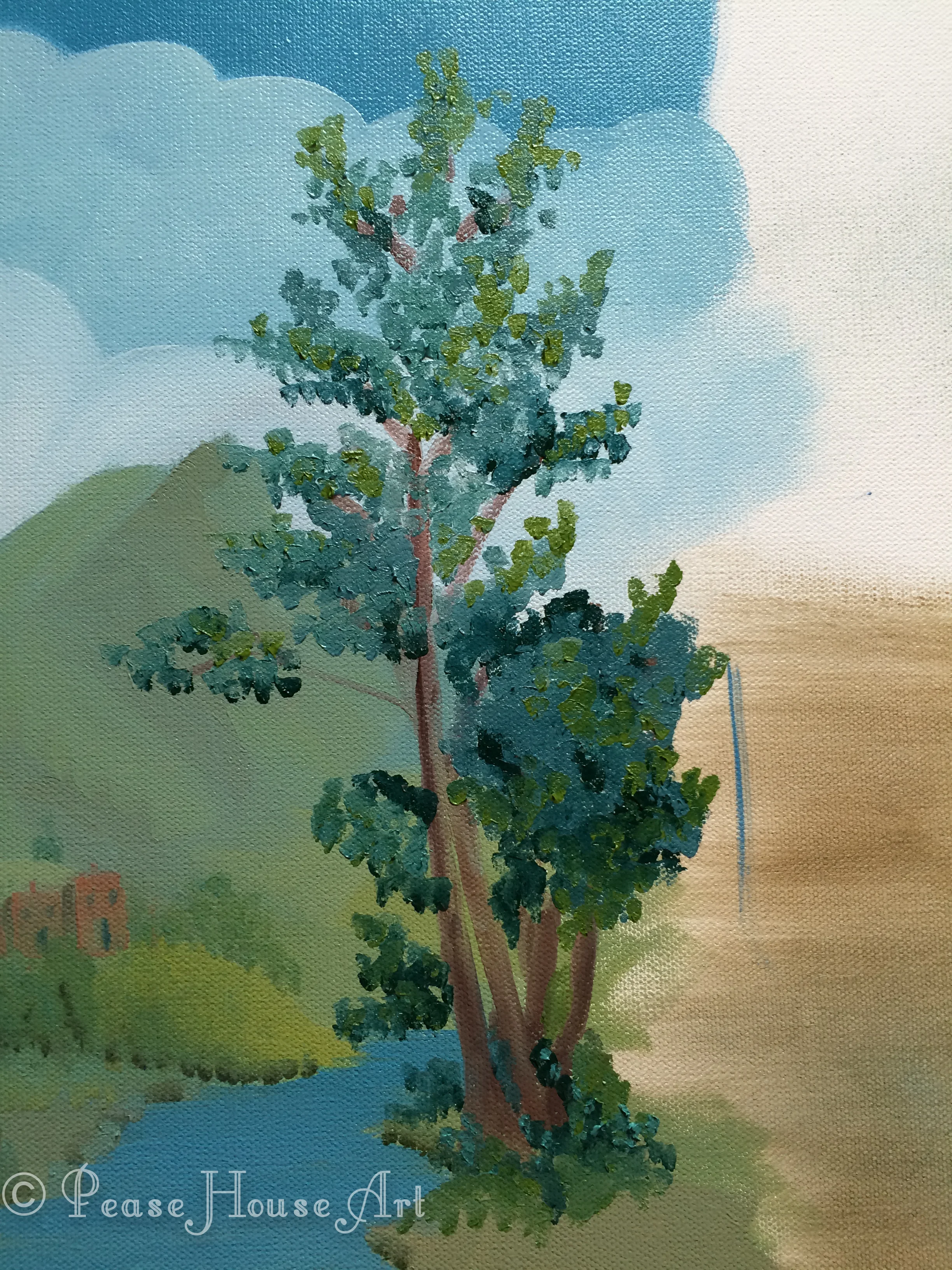 This part of the painting is not supposed to look as real as what I typically create. So it was fun to be a little more whimsical with the clouds. It reminded me of another book I used to love to read to my students and my children, "Cloudy with a Chance Meatballs". While it does look like there might be balls in the clouds, I don't think they are meatballs.
